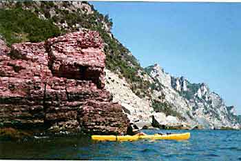 rocce e ancora rocce per tanti km senza un ridosso e approdi con mare mosso.
