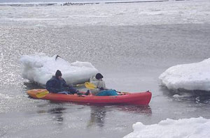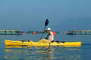 SIN la persona indossa il kayak, diventa tutt’uno con la barca e contrasta facilmente qualunque onda facendo gli opportuni appoggi con la pagaia. Perfetto. Oltretutto con le linee e la coperta a pelo d’acqua e pochissima stabilità primaria si possono bucare le onde e andare anche con mare forza sette.