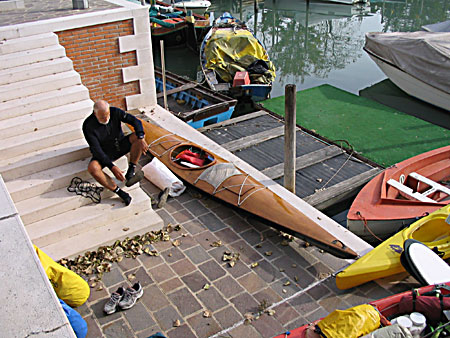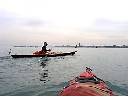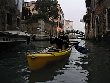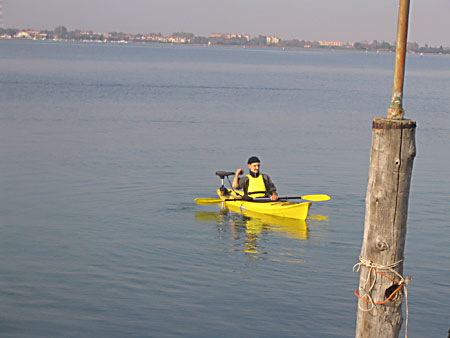 *** venezia *** > attenzione anche se non sembra ci sono tutti i consigli e dritte per un WestEst a Venezia > Questo è il leggendario Babe Ruth degli Yankees > Forse vale la pena di ricordare. Si dice accesso o attacco di poesia quando uno con una passione nuova non vede completamente la realtà. Per esempio uno con la mountain bike nuova non si accorge che sta portando a spalla da chilometri un pezzo di ferro pieno di affari che mordono ma anzi si diverte. Credo di essere uno dei pochi che usano questa parola nell'accezione di malattia e mi sento quindi in diritto di chiarire che è benigna, lascia dei postumi desiderabili ed è bene soffrirne spesso al contrario di una fastidiosissima laringotracheite che mi tormenta da sempre > per esempio mi ha impedito di diventare un fanatico inuit dopo il corso di kayak da mare ma funziona altrettanto bene impedendomi di realizzare accrocchi strani da montare sulla canoa tipo un motore o una deriva mobile per la vela ecc > Ovviamente è un elemento prezioso da portarsi dietro in trek. Si risparmia peso sui viveri. Pescione a Capraia > Quella volta li ho fatti lessi con la maionese. Per conto mio la maionese in tubetto si conserva benissimo a lungo > In parole indigenti: non si può andare perchè fa freddo e le nottate sono troppo lunghe > Nato nel 41, barba bianca, occhi chiari, parecchio alternativo, perfido come solo le persone intelligenti possono essere visto che per essere solo cattivi la stupidità aiuta, 'metalmeccanico' in pensione libero come l'aria, una moglie peggio di lui. Purtroppo non sono io. Però io ho quattro nipoti. > Lo ha anche ignobilmente sfruttato, i pesci presi erano tanti che hanno fatto anche il sushi > Per conciliare uno di Ventimiglia uno di Lucca e uno di Sarzana abbiamo finito di caricare a mezzanotte. Sveglia alle 5.15. Il panino di canoe si è dimostrato stabile > L'imbarco è comodo al passo di Campalto, normalmente proprio sutto il pontone sbocca una fogna ma stavolta non puzzava. Cliccare per indicazioni > Solo attraversare la laguna da Mestre con Venezia là in fondo lo ha emozionato > Chiari segni di squilibrio usa la canoa bella in legno con tanto di polena > Io purtroppo non provavo più i brividi da Stendahl ma fortunatamente neppure di freddo mancando la bora > Poi una roba da turisti di bassa lega > ... > ... > L'unica cosa non abbiamo trovato nessuno per farci fare la foto di gruppo > Siamo pedoni e dobbiamo tenere la sinistra > evitando i vaporetti facciamo le doverose girate > Il programma prevede di dormire sull'isola di Campalto laggiù in mezzo > Fa buio dimolto presto ma i due professori in barba bianca studiano accuratamente le reazioni del soggetto > organizzando al meglio la sala operatoria > e studiando le attitudini del soggetto per la vita all'aria aperta > Due parole sull'isola di Campalto è deserta ma Tito Pamio dell'Arcobaleno tenta di colonizzarla nonostante le continue incursioni dei vandali. Ottima per fermarsi a dormire a parte forse il rischio di incursioni basta dirlo a Tito > La domenica sull'isola è prevista la festa del ventennale dell'Arcobaleno ma il soggetto in preda ad una crisi profonda salpa verso l'orizzonte per vedere Murano e Burano mentre i due sperimentatori fanno pausa al solicchio aiutando, con moderazione, a preparare la festa > Loro fanno le cose in grande 40 kg di castagne e vista che la cultura locale impone sempre l'offerta di un'ombra taaanto vino. Notevole il grinton un vino locale ottenuto da viti non innestate con un vago sentore di fragolino e che secondo il Pocobono è assimilabile ad un calcio di mulo. A me non ha dato effetti collaterali > tanto legno > tanta gente > ma tanta > Tante cose buone. Notare la geniale griglia volante dell'Arcobaleno che permette di cuocere perfettamente anche su fuochi con fiamma > Il soggetto è rientrato alle 15.30 ormai completamente fuori controllo si preoccupa di dove comprare l'attrezzatura e sta già sognando un giro alle Incoronate (E' uno dei trek più impegnativi, rocce cattive e ti devi portare dietro anche l'acqua ) > Io sono un buon amico, mica come il Pocobono, ho provato con l'aiuto di Babe a evocare quell'anima del padella di Joe di Maggio ma era occupato con Marilyn così ho ripiegato su questo bambino che ha un'aria determinata. Cercherò di fare l'impianto con un'operazione ambulatoriale attraverso i seni nasali appena vedo il soggetto > 'IO' sono diventato bravino a scansarmi e sto aspettando a gloria di andare alle Kornati portando ovviamente il soggetto per ulteriori esami |
